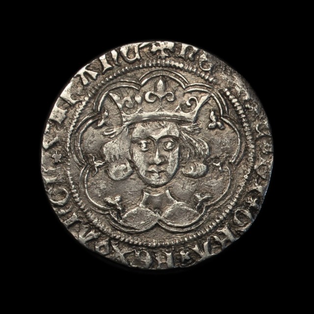 London mint, crowned facing bust, rev. long cross fourchée, mascle before LON, pinecone after TAS, S A over O in TAS, 3.53g, (S.1874, N.1460). Toned, about very fine