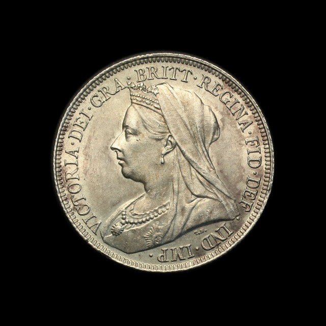 1898, old bust left, rev. crowned shields in garter, date below, (S.3940A, N.3163)