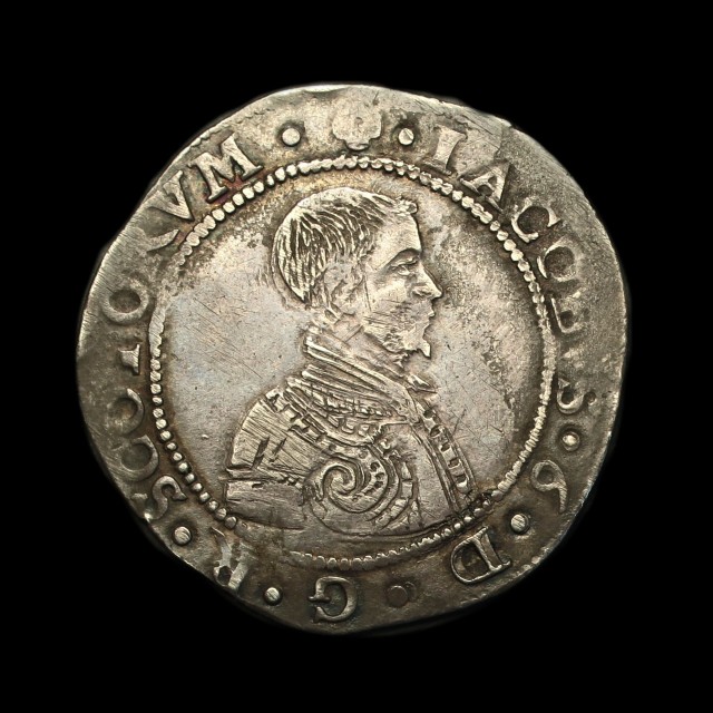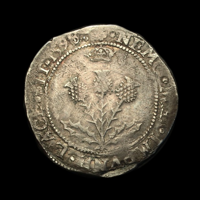 1598, half length portrait right, rev. thistle, crown above, (S.5493)