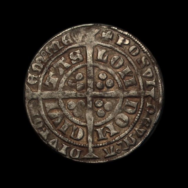 Pre-Treaty period, series Gb, crowned facing bust, rev. long cross pattee, reads LOMDON, LOM under POSVI (rare), 4.56g, (SCBC 1570, N.1194). Some weak areas, tone and nearly very fine