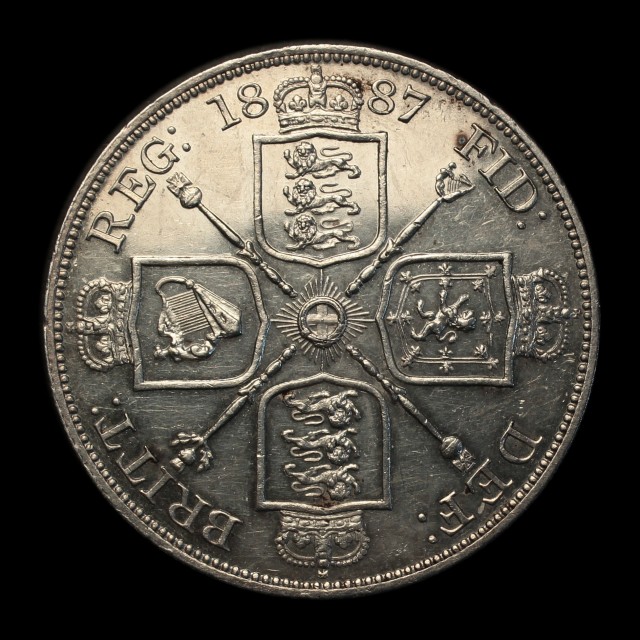 1887, jubilee head left, rev. crowned cruciform shields, sceptres in angles, (SCBC 3923, ESC 2697)