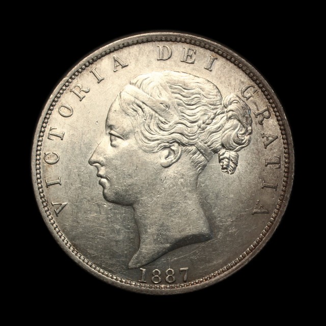 1887, young head left, date below, rev. crowned shield in garter, (SCBC 3889, ESC 2769)