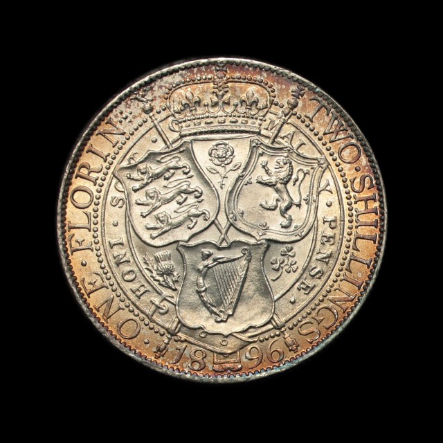 1896, old veiled head left, rev. shields in garter, crown above, date below, (S.3939, ESC.2966)