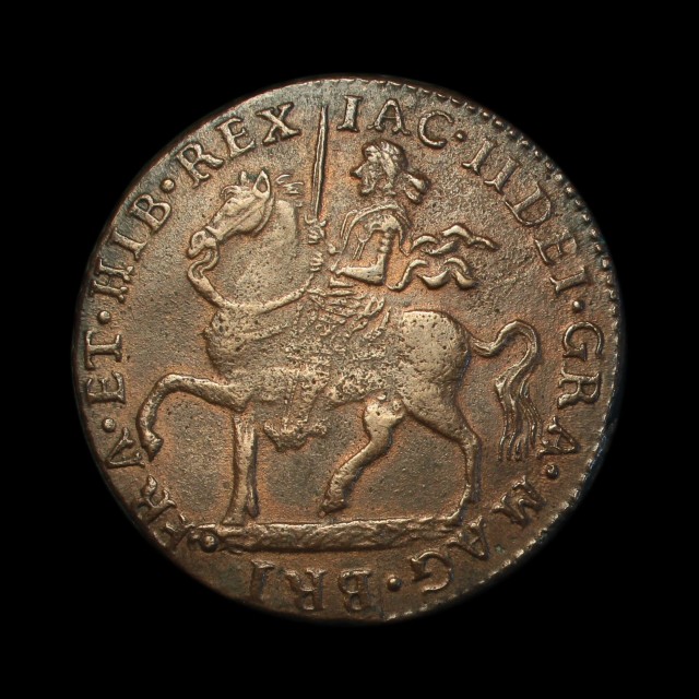 Dublin, king on horseback left, rev. crowned cruciform shields surrounding crown, ANO DOM 16 90 in angles, legend split VICT / ORE, (S.6578). An excellent example of the type, good very fine with some lustre, particularly to the reverse, rare thus