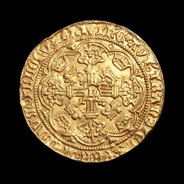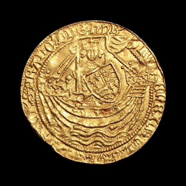 London, king in ship, annulet by sword arm, lis after h/enric, legend ends HYB, rev. H in centre, annulet in 2nd quarter, annulet stops, 6.66g, (S.1799, N.1414). Has the appearance of being water-worn, very fine.