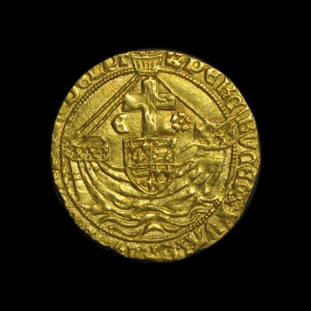 London, St. Micheal spearing the dragon, R. ship with E and rose beside mast