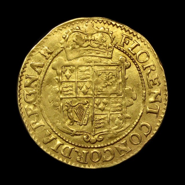 Second bust, in ruff, armour and mantle, MAG BR FR ET HIB, reverse square-topped shield, beaded inner circles, mintmark at the end of the legend, 9.10g, (S.2687, N.2148, c.f. Brooker 37-42). A couple of small metal flaws to the obverse, but full, round and very fine.