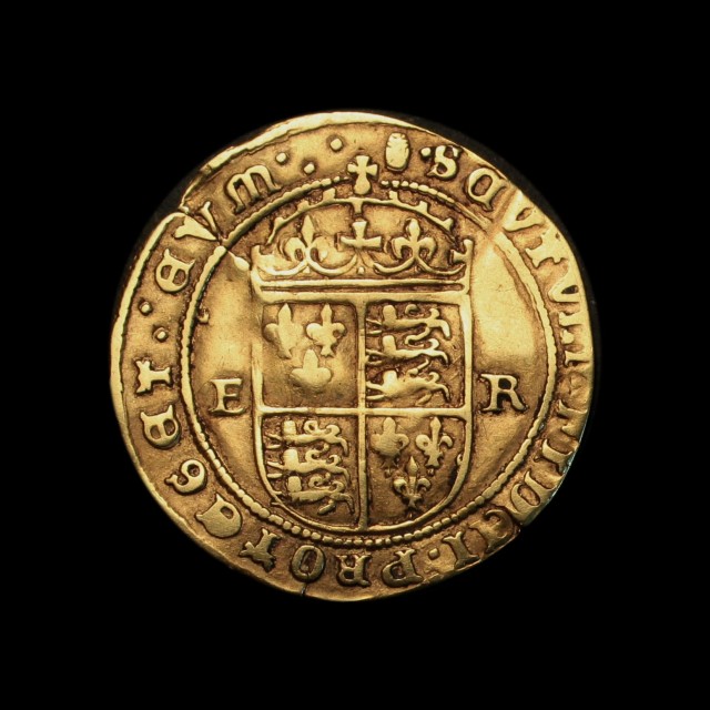 Half length crowned portrait holding orb and sceptre, rev. crowned shield between E R, mm.tun, 2.49g, (S.2452, N.1929). Slight edge crack and a few old creases, otherwise full, well centred and with a clear portrait, good fine. An extremely rarely encountered type.