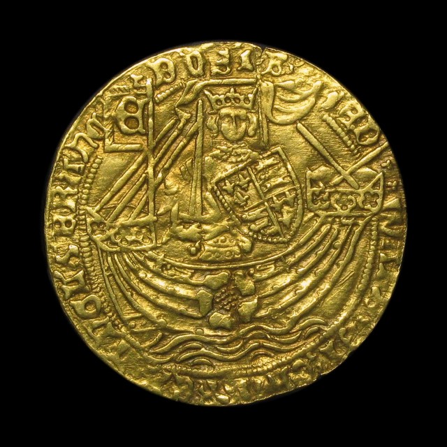 Type VI, mm.-/sun, large fleurs in spandrels, 7.48g (S.1950, N.1549). Struck on a full round flan, minor closed crack at 12 o'clock, nearly very fine.