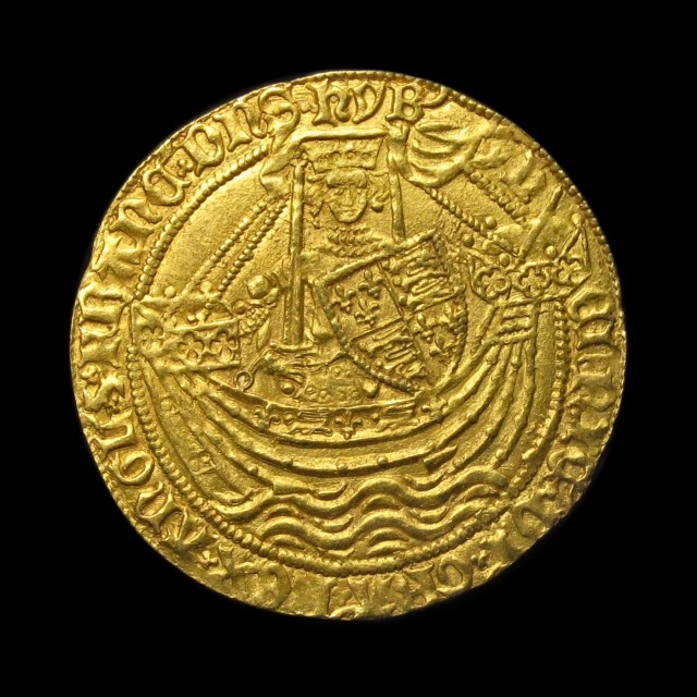 London, king in ship, annulet by sword arm, lis after h/enric, then trefoil stops, legend ends HYB, rev. H in centre, annulet in 2nd quarter, cinquefoil after Ihc, then annulet stops, 6.96g, (S.1799, N.1414). Well centred good very fine/nearly extremely fine.
