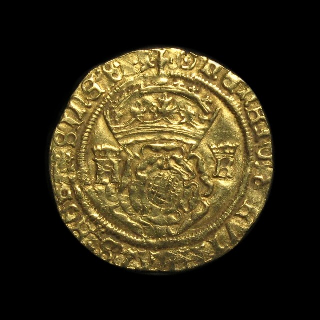 mm. pellet in annulet, crowned rose dividing crowned H and R, rev. crowned shield dividing crowned H and R, RVTILANS in obv. legend, Roman H and R in field both sides and rare thus, 2.61g, (S.2305, N.1834, cf. Schneider 634). Nearly very fine.
