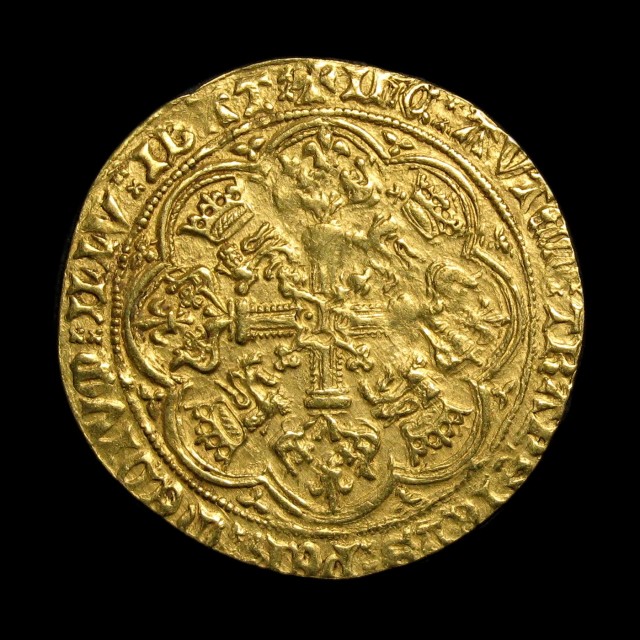 Annulet and slipped trefoil on side of ship, rev. slipped trefoil in second quarter, h to centre with pellet left, 6.87g, (S.1715, N.1355, Lockett IV, 3997 - same dies). Obverse slightly off-centre but full weight, some weakness as often found with this issue, sharp where fully struck up and better than very fine thus.