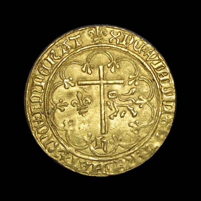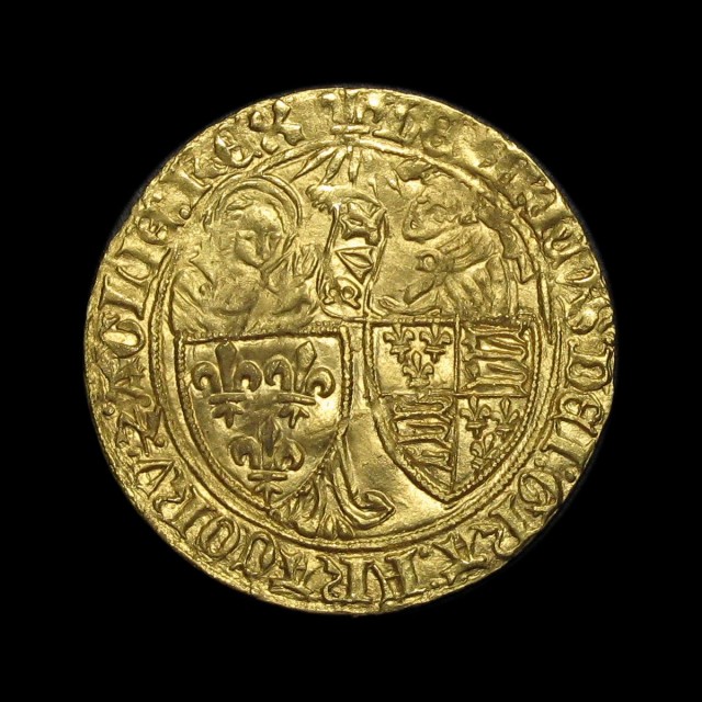 The Annunciation above conjoined shields of France and England, rev. latin cross between lis and leopard, 3.48g, (Elias 271, Fr.355). Good very fine to nearly extremely fine with lustre.