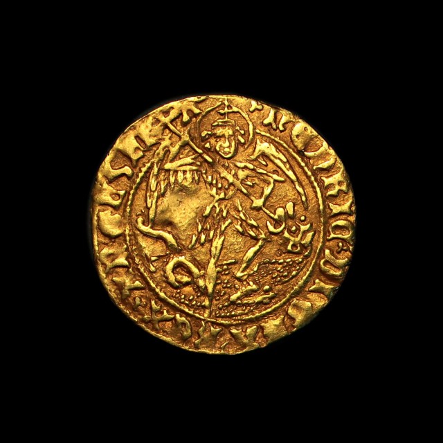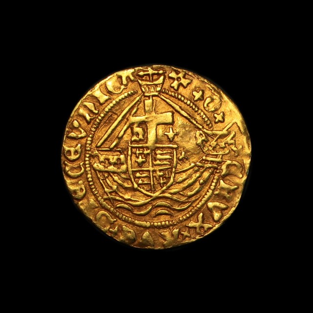 St Michael slaying dragon, rev. ship with H and lisbeside mast, mm. restoration cross, 2.52g, (S.2080, N.1615). Nicely struck on a full flan, once with a tiny piercing, golden tone and good very fine