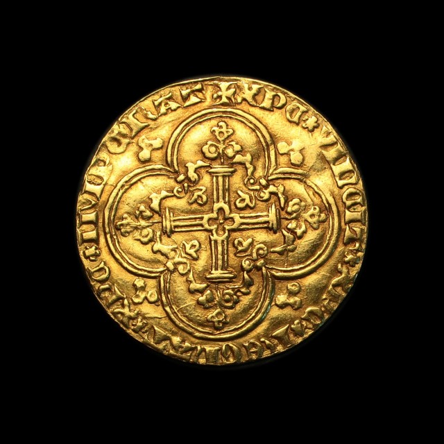King wearing armour charging on horseback left, rev. ornate cross im tressure of four arcs, 3.76g, (Duplessy 294, Friedberg 279)