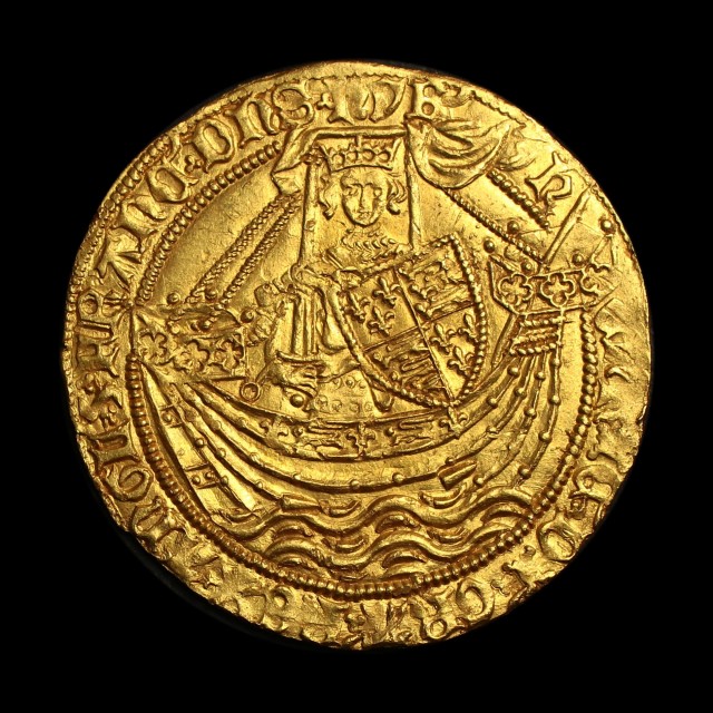 London, king in ship, annulet by sword arm, trefoil stops, rev. H in centre, annulet in 2nd quarter, cinquefoil after Ihc, then annulet stops, 6.93g, (S.1799, N.1414). Well centred almost extremely fine.