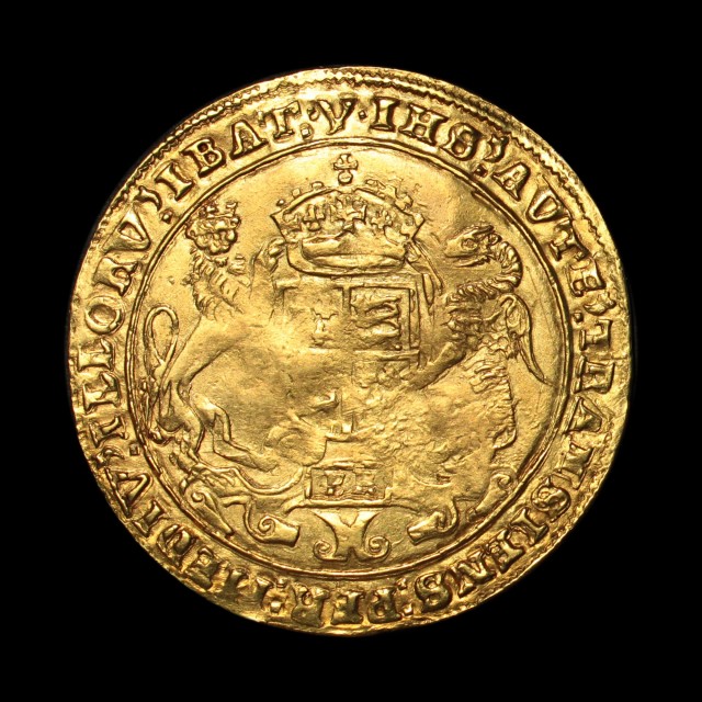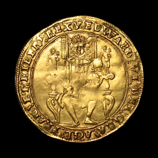 Southwark mint, mm.Y, king seated facing on decorated throne, holding sword and orb, rev. crowned coat-of-arms with leopard and griffin supporters and ER below, 10.99g, (S.2433, N.1906). Weakly struck across the centre of both sides, otherwise sharp and where struck up nearly extremely fine.