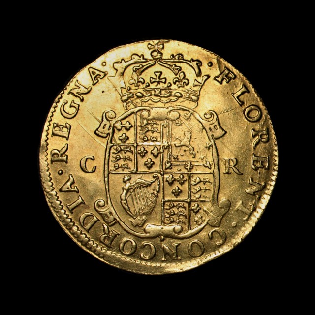 Bust left, mark of value behind, mm. crown/-, rev. crowned oval shield between C R, 9.03g, (S.3304, N.2754). A full, round coin, most attractively toned with some mint brilliance, nearly extremely fine.