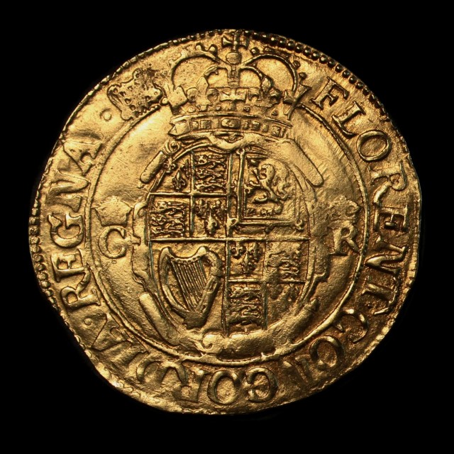 Group D, bust 5 with falling lace collar, mark of value behind, rev. crowned oval shield between crowned C R, mm. portcullis, 9.02g, (S. 2692, N.2153). A full round coin, good very fine, the portrait better