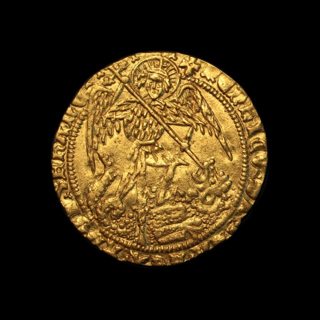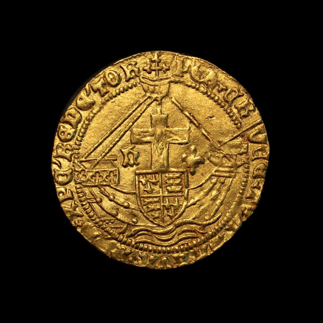 St Michael slaying dragon, rev. ship with H and rose beside mast, mm. pierced cross, 5.08g, (S.2078, N.1613). Very rare in any condition but particularly so in this state of preservation, struck on a slightly dumpy but full weight flan, extrmely fine
