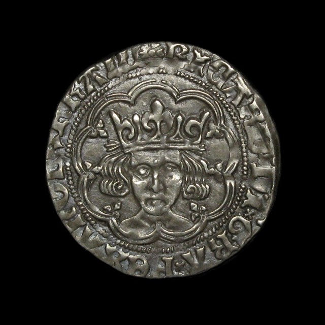 Mintmark sun and rose 3, with only four rays to the sun and a distinctive flat bottomed petal at 6 o´clock, is rare, and is usually found on coins struck on a small thick flan. Only one other example of a Richard III groat with the mule marks sun and rose 2/3 appears to survive