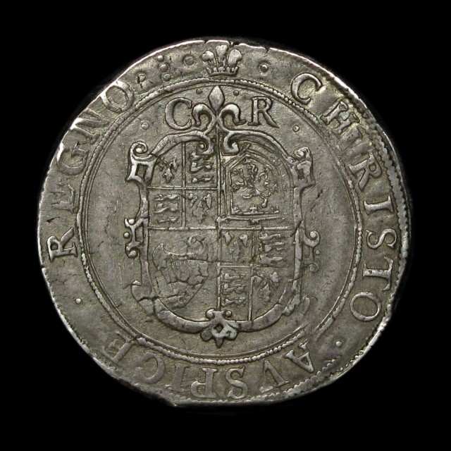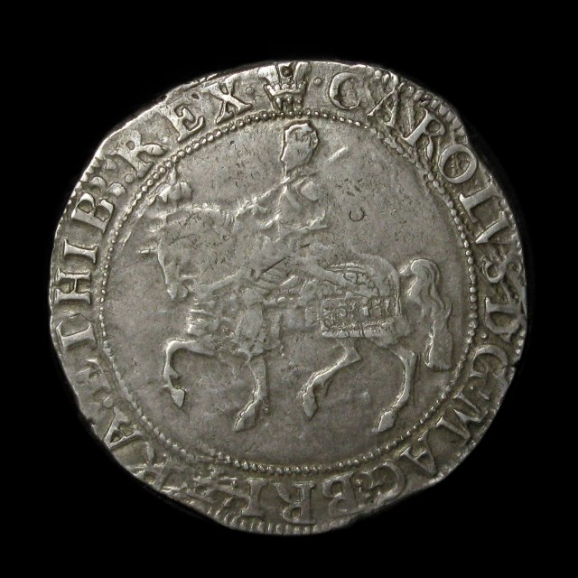 Second horseman, king on horse l. with cross on housings, rev. oval shield with CR above, mm.plume, 14.82g, (S.2769, N.2205). Full and round, better than very fine.