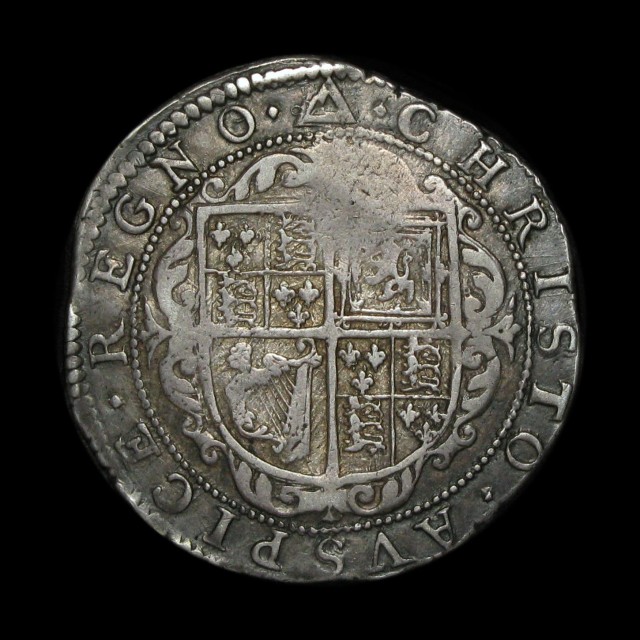Briot's horseman l., groundline below, mm. triangle over anchor, rev. heavily garnished shield, 15.05g, (S.2861, N.2307). Very fine, and very rare.