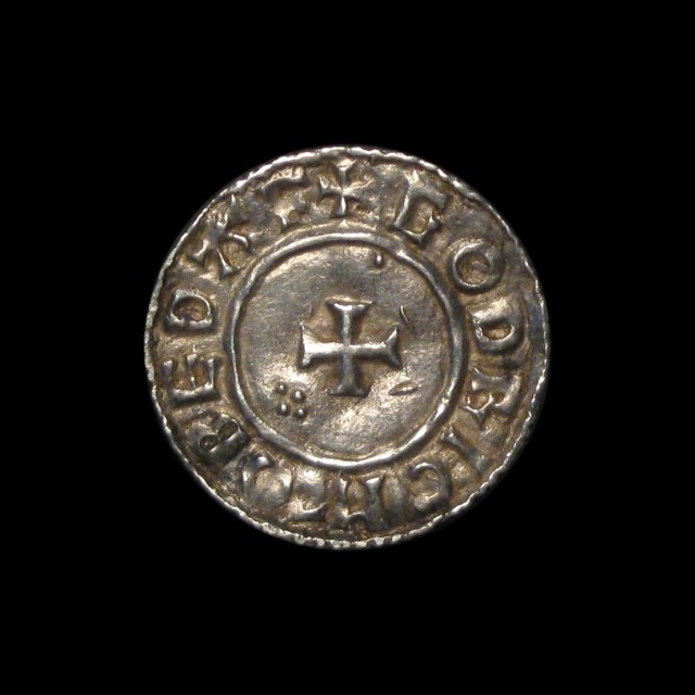 Obv. +AEÐELRD RE. ONI, Rev. +GODRIC M-O BEDA, group of four pellets and a seperate single pellet to reverse, unusual legend reading to obverse, 1.41g (S.1154, N.777). Pleasing good VF, rare and unusual.