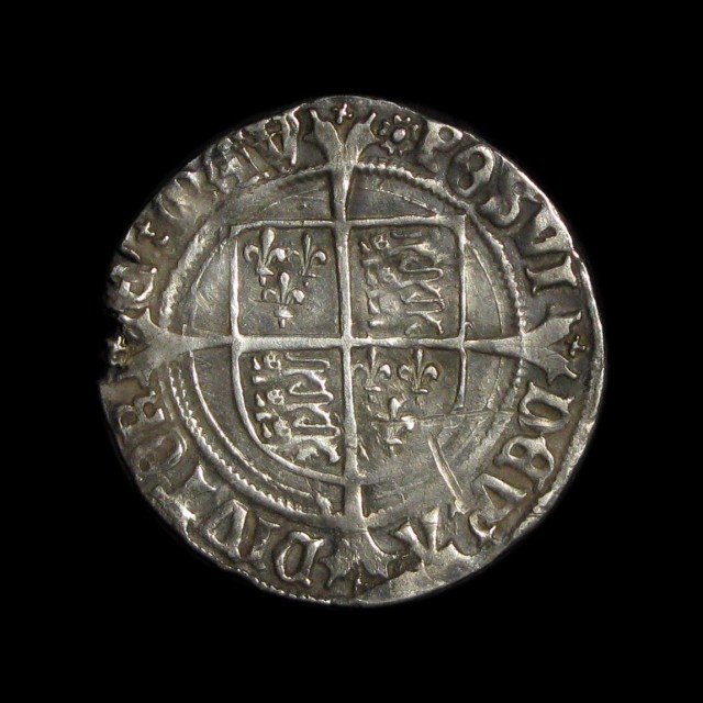 Face with pointed nose, crown arch does not break inner circle. Lombardic lettering, mm. rose, 2.60g, (S.2337D, N1797). Small edge chip at 5 o'clock, otherwise a very presentable example of this scarce issue, VF.