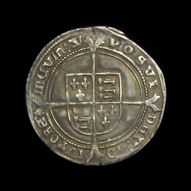 Facing bust, Tudor rose left, value VI right, small letters to legend both sides, small plumes to reverse shield, mm. y, 1551, 3.37g (S.2483, N.1938). A couple of minor edge cracks, about VF with a good portrait.