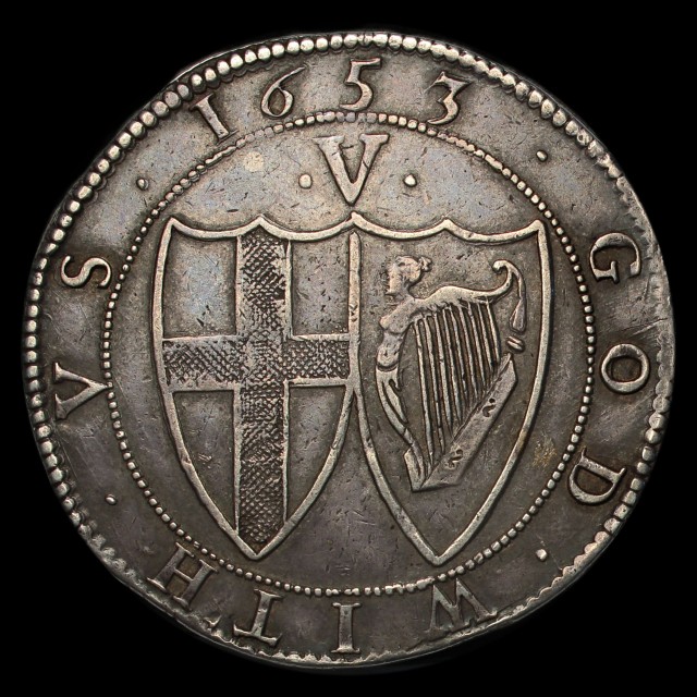 1653, English shield within laurel and palm branches, mm.sun, 30.55g, (S.3214, N.2719, ESC.6)