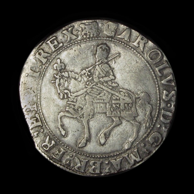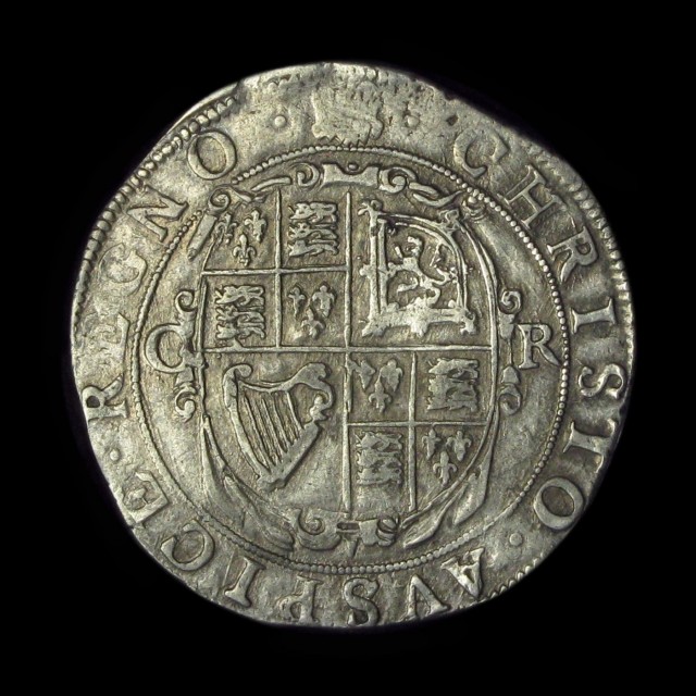 Horse with cross on housings, R. oval draped shield with CR at sides, 14.77g, (S.2771, N.2207, Brooker 315-317). Pleasing very fine on a round flan.