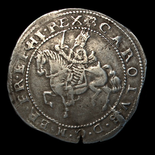 Short portly king on ill-proportioned horse left, rev. as S.3070 and S.3072 with date to left of mint mark, mm.rose, 13.80g, (S.3074, N.2565). Full flan and very fine, extremely rare