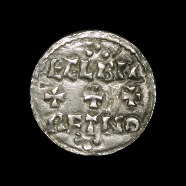 North East 1 style, large lettering, moneyer Eglbert?, obv. ÆÐELZTAИ R, rev. moneyer's name in two lines with crosses between and a trefoil of pellets above and below, EGLBH / RET NO, 1.27g, the moneyer unlisted by Blunt, (S.1089, N.668, BMC i). Very fine, the reverse better.