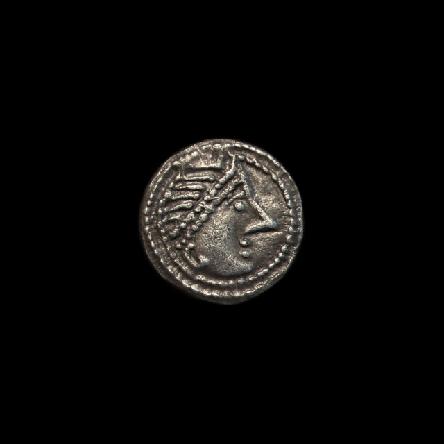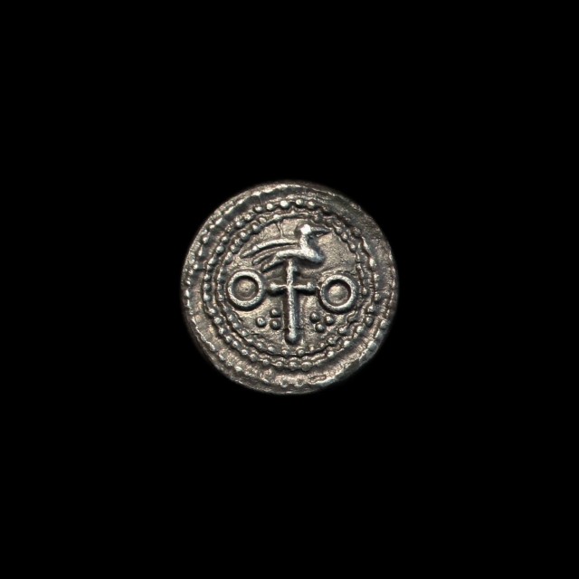 York, series J, type 85, diademed head right, double pellet beaded border, rev. bird right on cross pommee, annulets both sides, trefoil in lower angles, no pellets before bird and bird of different (finer) style to normal, triple pellet border, (S.802 var, Abramson -, N.-). A most attrractive coin, fully centred, nearly extremely fine and unusual.