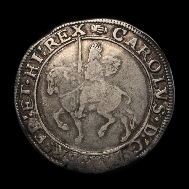 Type 3a2, King on horseback left, cloak flying from shoulder, rev. oval garnished shield, mm.tun, 14.91g, (S.2775, N.2211). A really full round example and pleasing for grade, sightly weak in the centre but nearly very fine/very fine