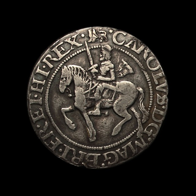 Type 3, king on horseback left, no ground line below, rev. round shield, mm. lion, 10.9g, (S.2865, N.2311). Underweight as often with thus type, otherwise very fine
