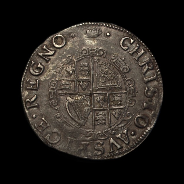 Group D, type 3a, crowned bust left with falling lace collar, mark of value behind, no inner circles, rev. round garnished shield, mm. tun, 5.95g, (S.2791, N.2225). Old grey cabinet tone, a most attractive good very fine