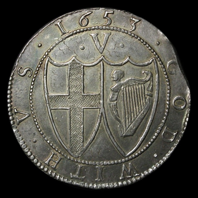 1653, English shield within laurel and palm branches, mm.sun (S.3214, N.2719, ESC.6)