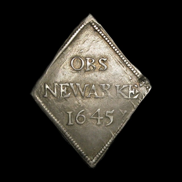 Lozenge, normal arched crown, NEWARKE 1645, 5.55g, (S.3142, N.2640). Well centred both sides, lightly toned with traces of original colour, minor flan flaw to edge but a most attractive example.