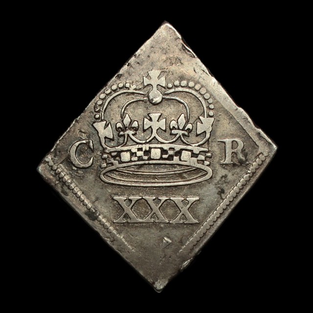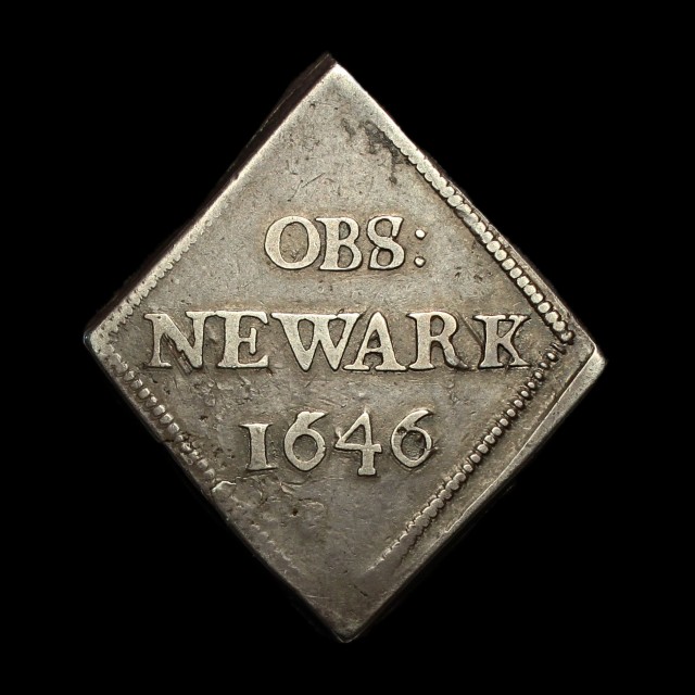Lozenge, large crown between CR, mark of value below. Rev. OBS NEWARK (S.3140A, N.2638). Well centred, nicely toned and good very fine. A pleasing example.