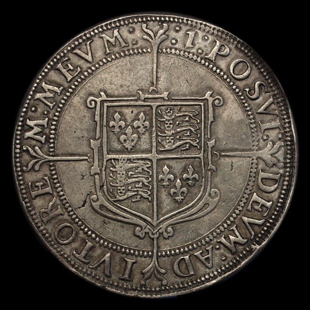 Elaborately decorated bust left holding orb and sceptre, rev. long cross fourchee over shield, 1601, mm.1, 29.83g, (S.2582, N.2012). Manufacturing annealing mark on face but a lovely full round example, well struck and good very fine