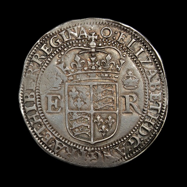Crowned quartered shield of arms between crowned ER, rev. crowned portcullis, mm. 0, 1600/1, 13.46g, (S.2607B). Even grey cabinet tone, excellent surfaces, good very fine and very rare.