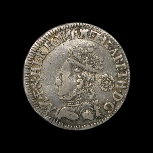 Large crude bust l. breaking legend, rose behind, retrograde N's, rev. quartered royal arms over long cross fourchée, date above, 1571/0, (S.2600, N.2031). Slightly flat on queens face but evenly toned and about very fine for this issue which is normally encountered either creased worn or damaged.