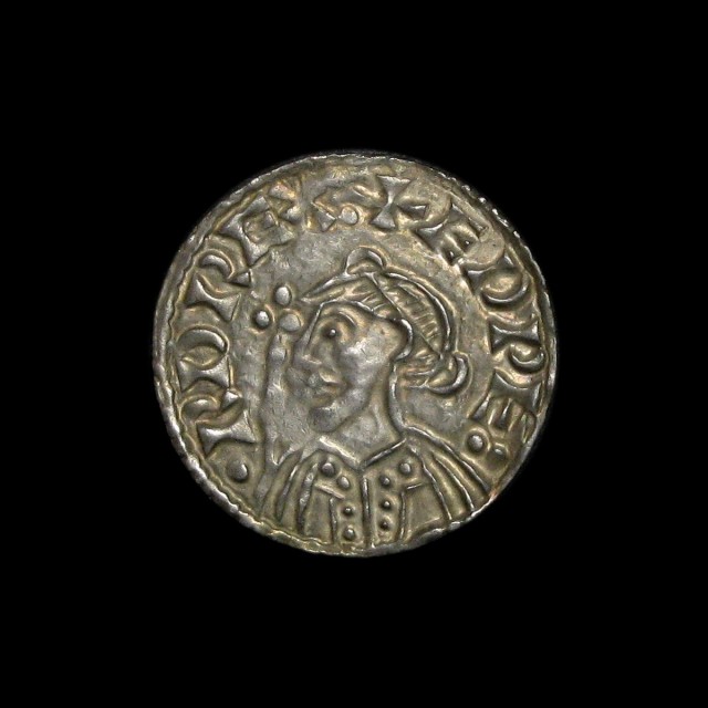 York mint, moneyer Leofnoth, rev. +LEOFENOÐ ON EOFE, 1.59g, (S.1176, N.823). Strike slightly softer on king's profile, otherwise nearly extremely fine and most attractive.