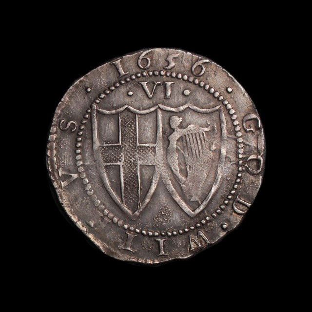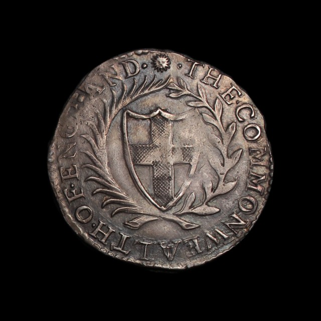1656, English shield within laurel and palm branches, mm.sun (S.3219, N.2726)