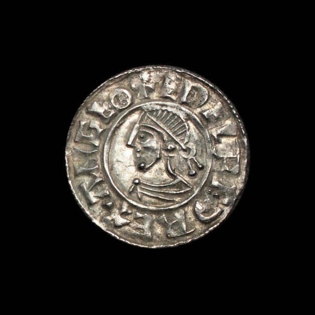 Obv. +EDELRED ANGLO. rev. +EÐELPINE ON MEL, 1.07g (S.1154, N.777). Pleasing portrait, good very fine.