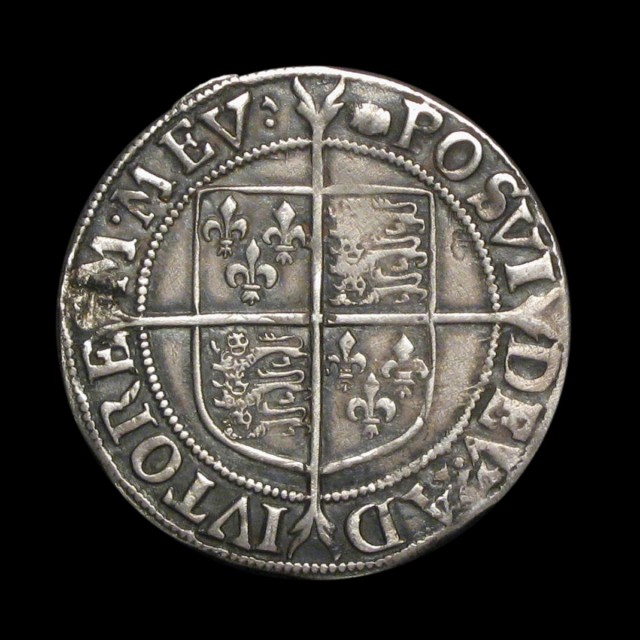 Sixth issue 1582-1600, mm. tun (1592-95), without rose or date, beaded inner circles, ear shows (S2577, N.2014). Small flan flaw to 'A' of ANG and correspondingly on reverse, otherwise full and nicely toned. A pleasing VF or better