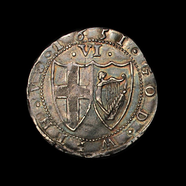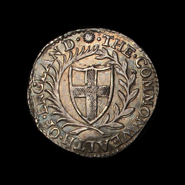 1651, English shield within laurel and palm branches, mm.sun (S.3219, N.2726)