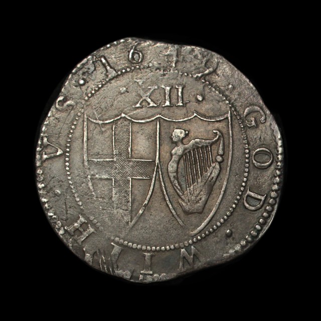 1649, English shield within laurel and palm branches, mm.sun, 5.49g, (S.3217, N.2724)